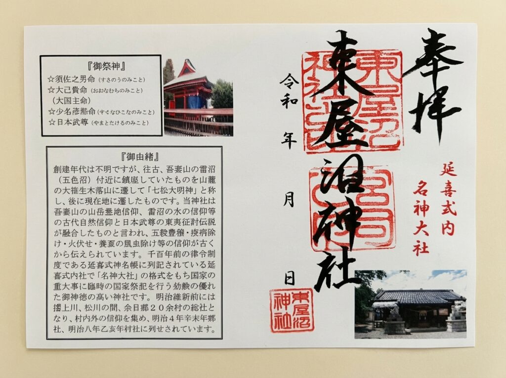 〇東屋沼神社御札